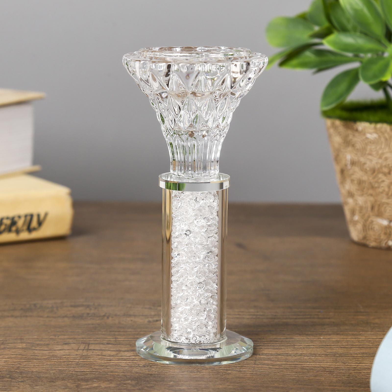 Подсвечник стекло на 1 свечу "Тюльпан с белыми шариками" прозрачный 13х6х6 см