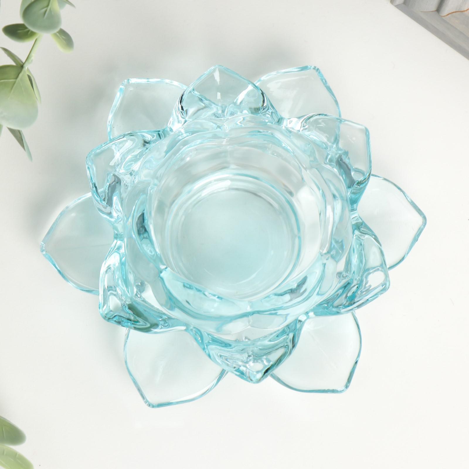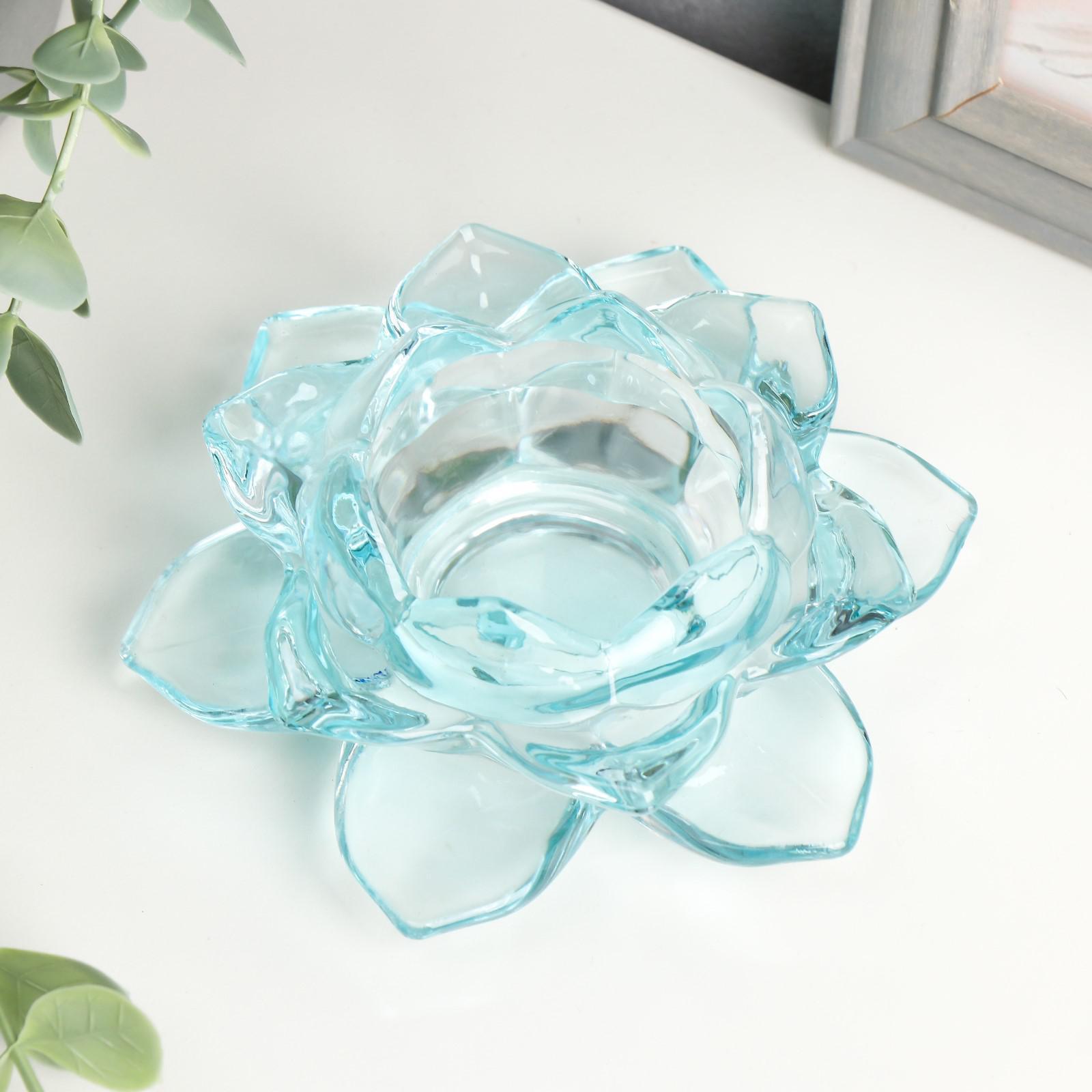 Подсвечник стекло на 1 свечу "Лотос" голубой 5,5х12х12 см