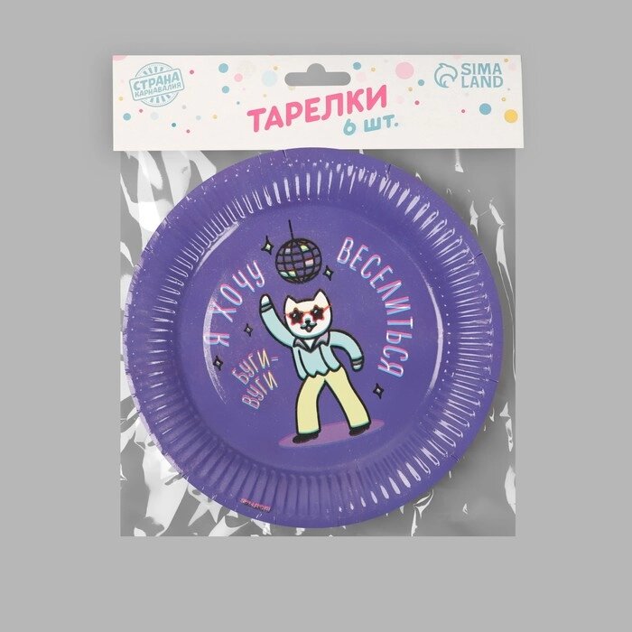 Тарелка бумажная "Буги-вуги", набор 6 шт, 18 см