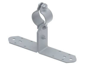 Держатель молниеприемной мачты диаметром 40 мм на пластине для монтажа на стену. Материал - горячеоцинкованная сталь.
