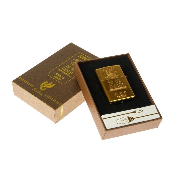 Зажигалка электронная в подарочной коробке, USB, дуговая, золотая, прямоугольная, 6.52.512