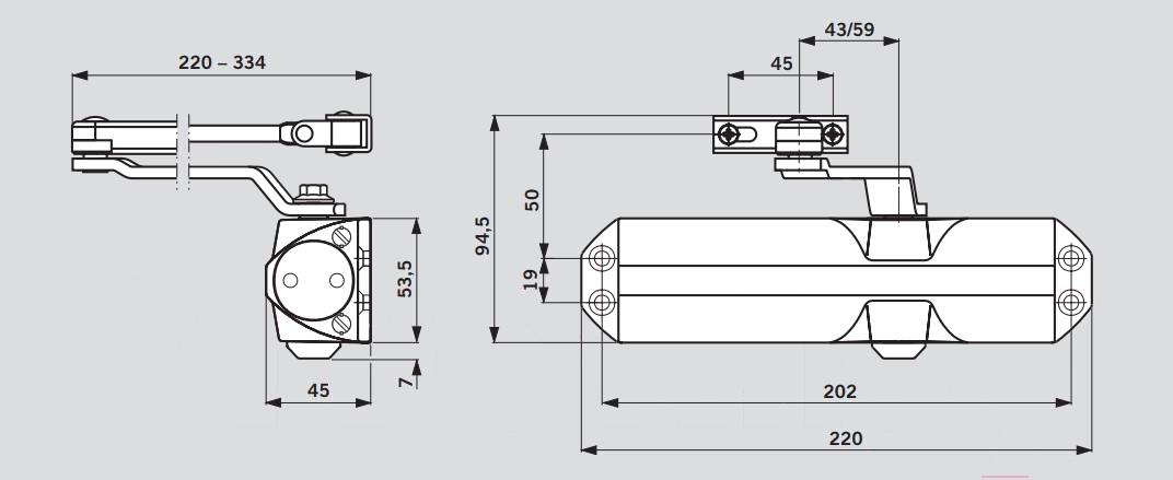 - Тип доводчик с рычагом