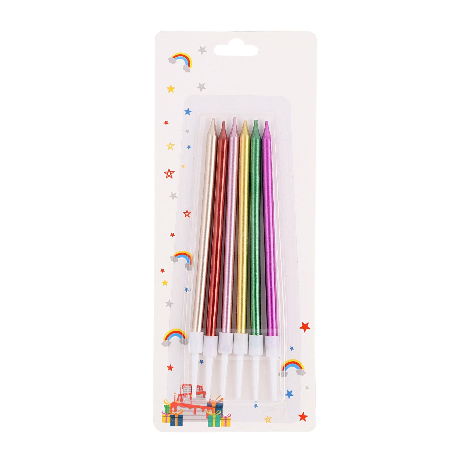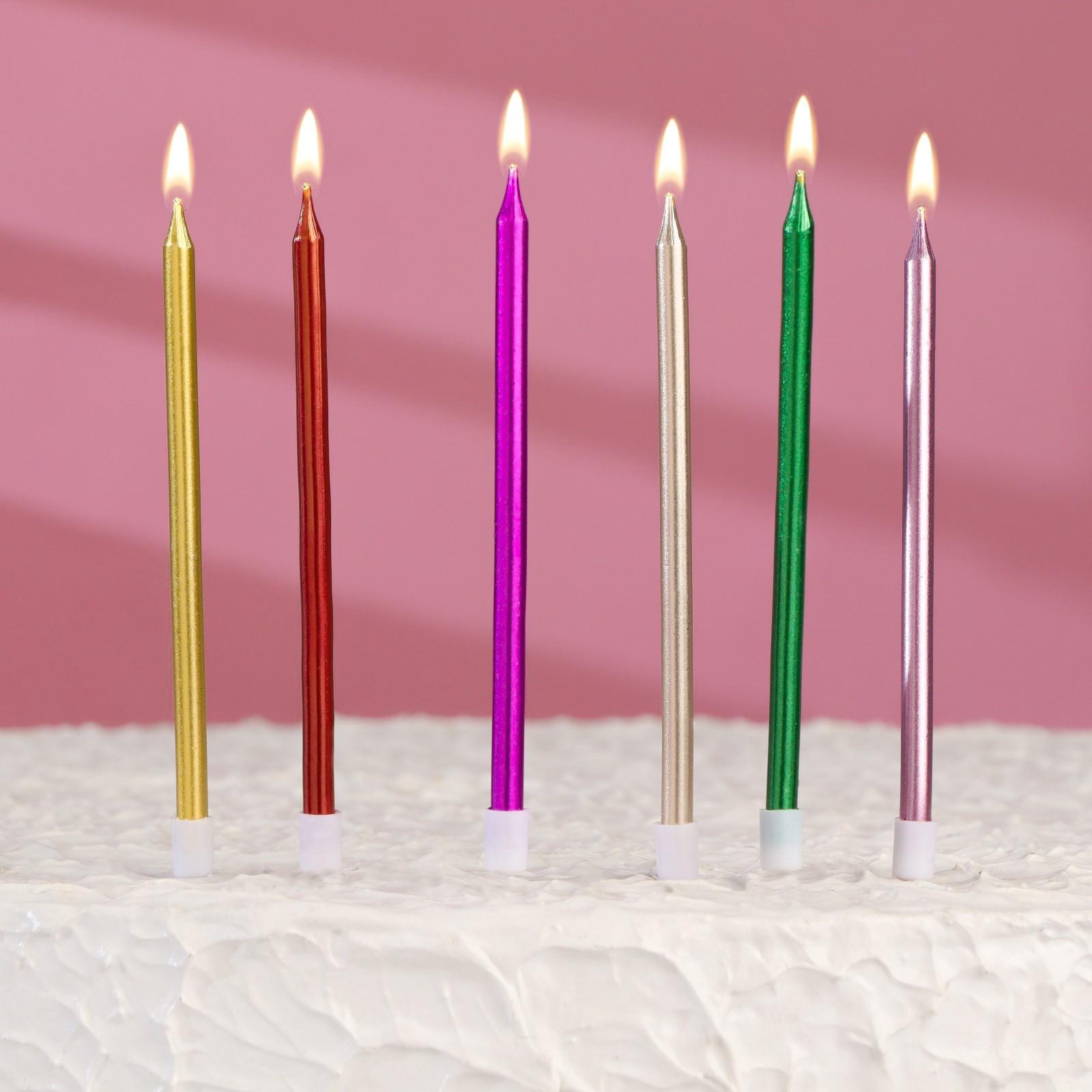Свечи в торт коктейльные "С днем рождения", 6 шт, 13,5 см, металлик