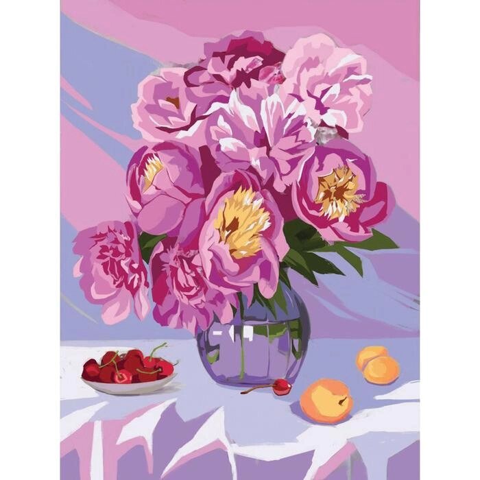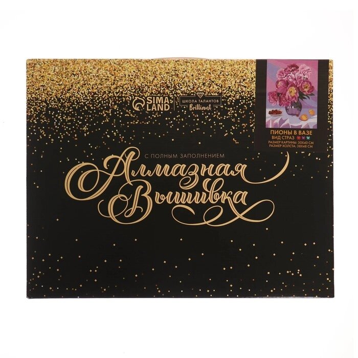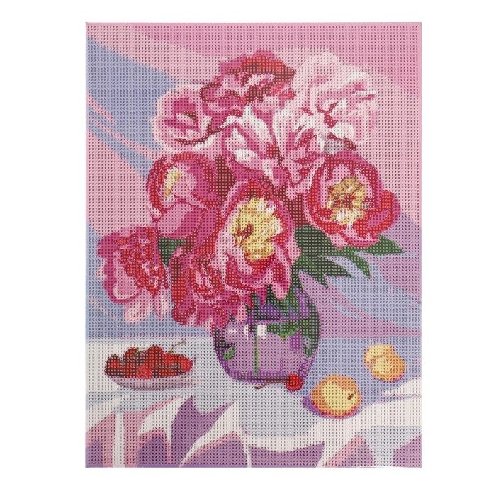 Алмазная мозаика на подрамнике с полным заполнением "Пионы в вазе", 30х40см