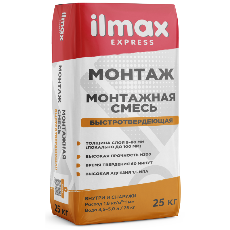 Смесь монтажная цементная "Ilmax express Монтаж" быстротвердеющая 25кг