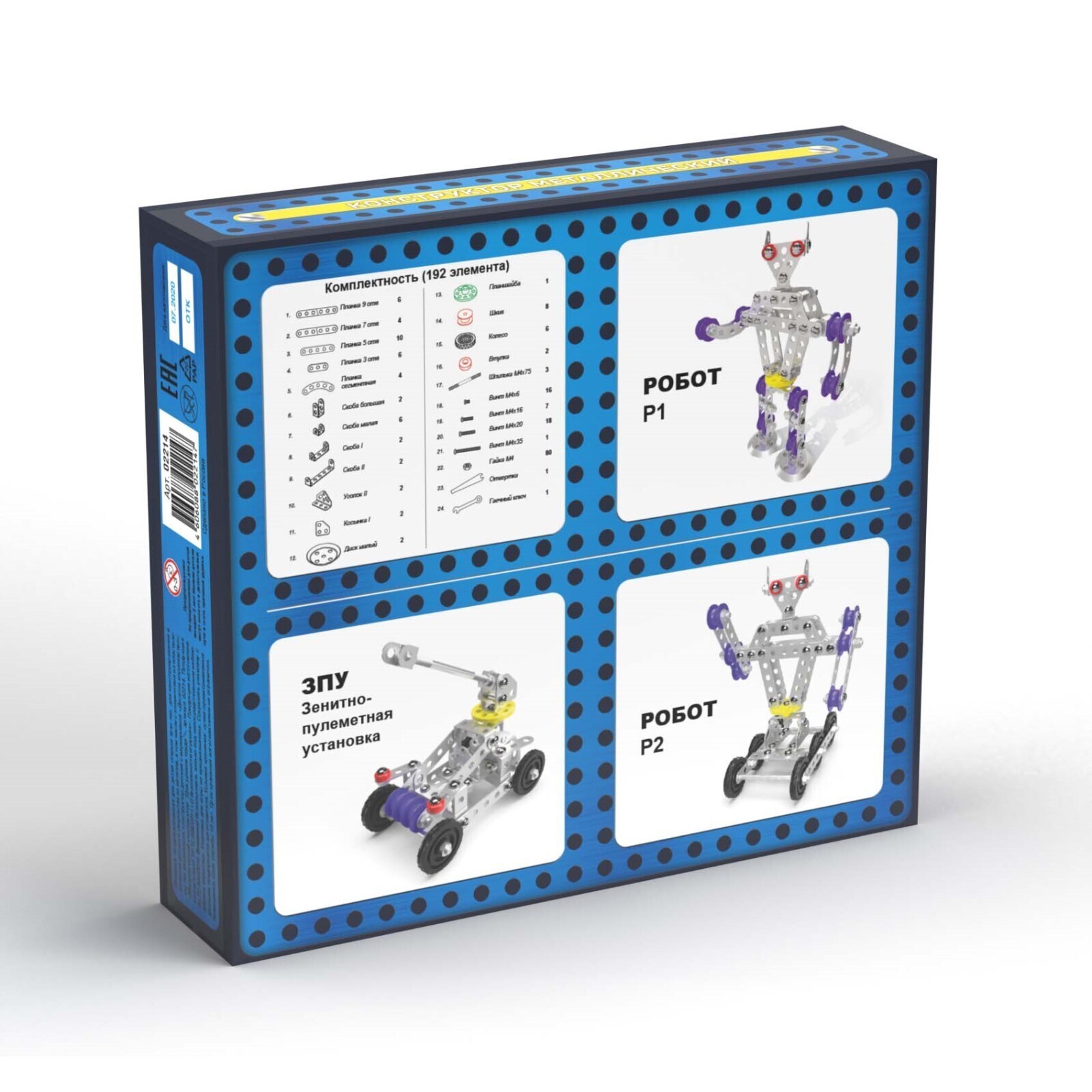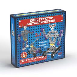 Конструктор металлический для уроков труда, 3 в 1, Робот Р1, Робот Р2, ЗПУ