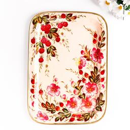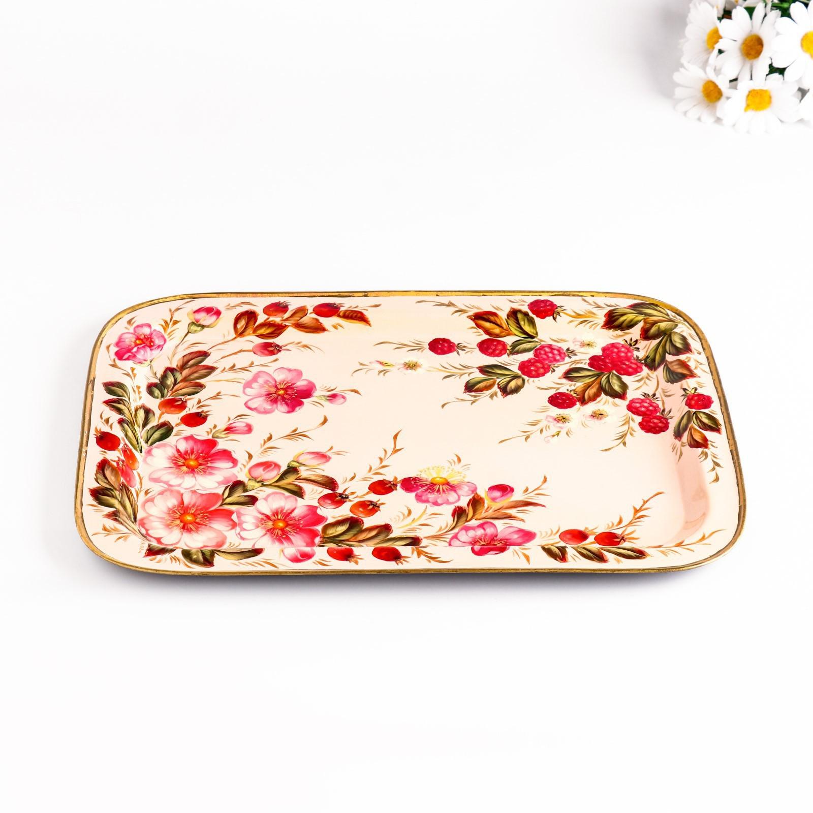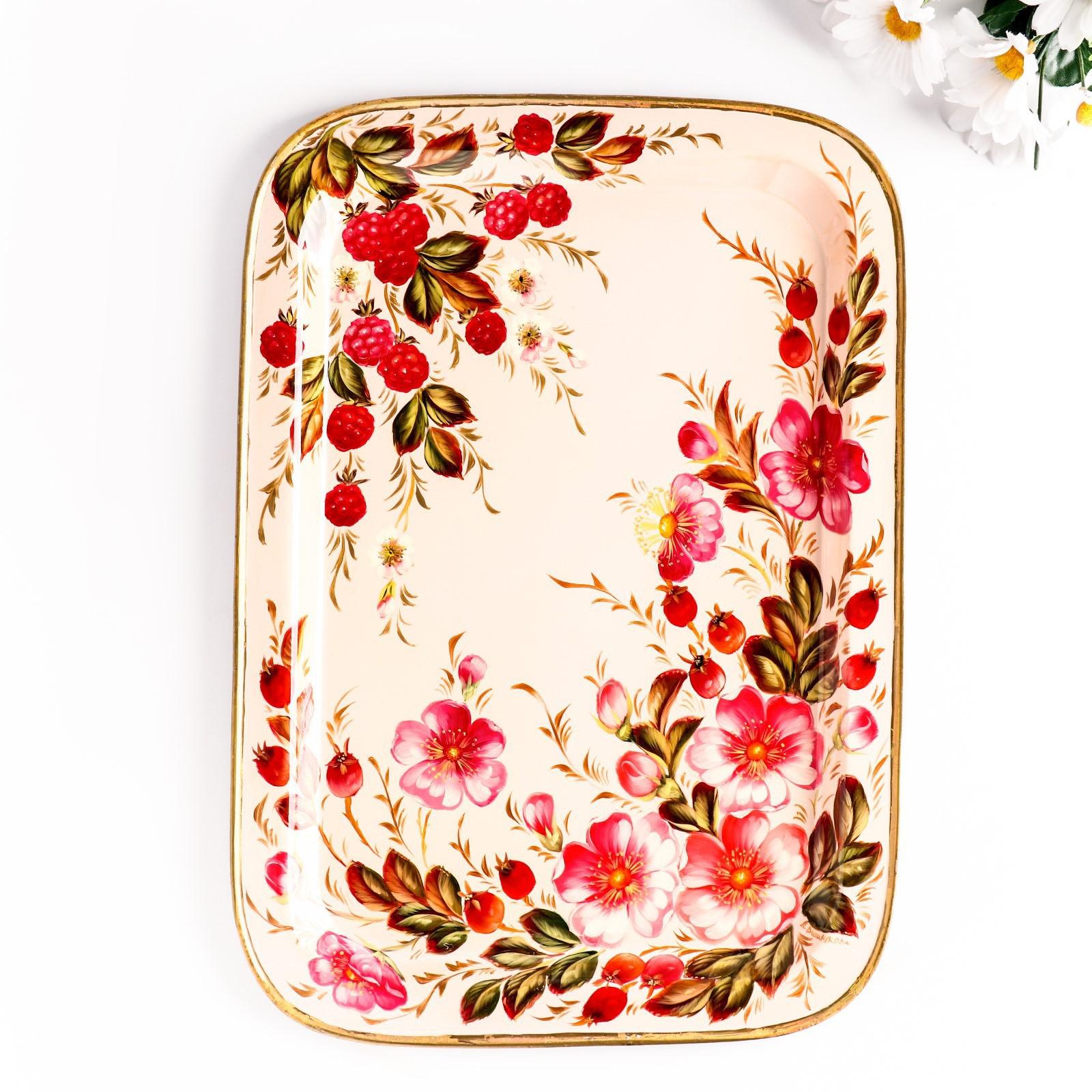 Поднос жостовский "Лесные ягоды", бежевый, с авторской росписью, 36х26 см