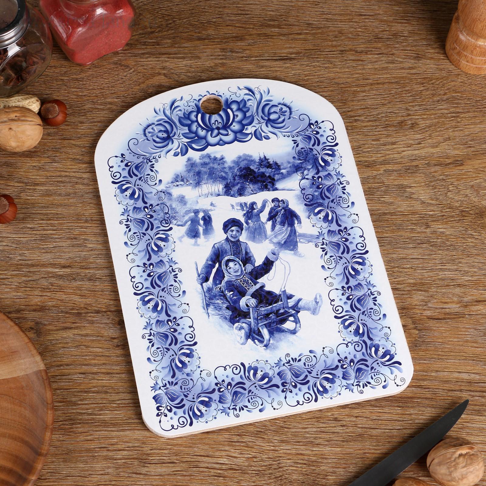Доска разделочная сувенирная "Гжель. Катание на санках", 19,5×27,5 см