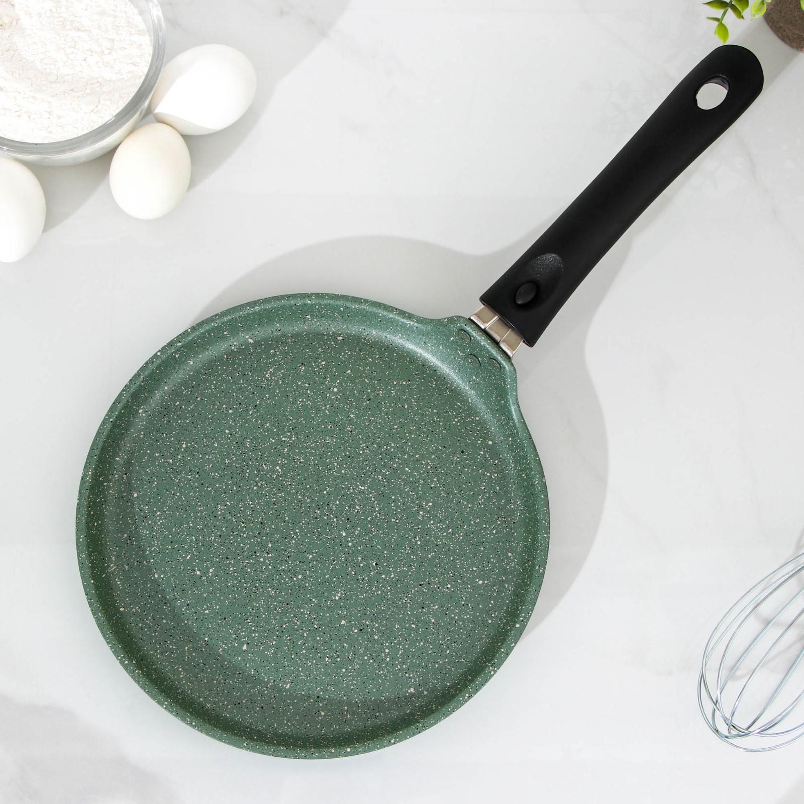 Сковорода блинная, d=22 см, пластиковая ручка, антипригарное покрытие, цвет фисташковый мрамор
