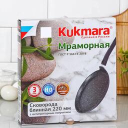 Посуда Kukmara «Мраморная» изготовлена из литого алюминия и покрыта инновационным антипригарным мраморным покрытием на водной основе, усиленным сверхтвёрдыми частицами минералов.