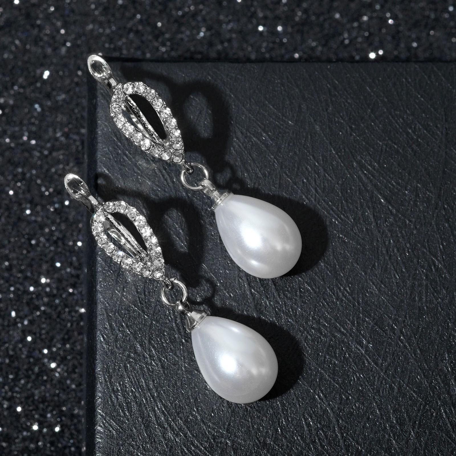 Серьги с жемчугом "Грейс" галка, цвет белый в серебре