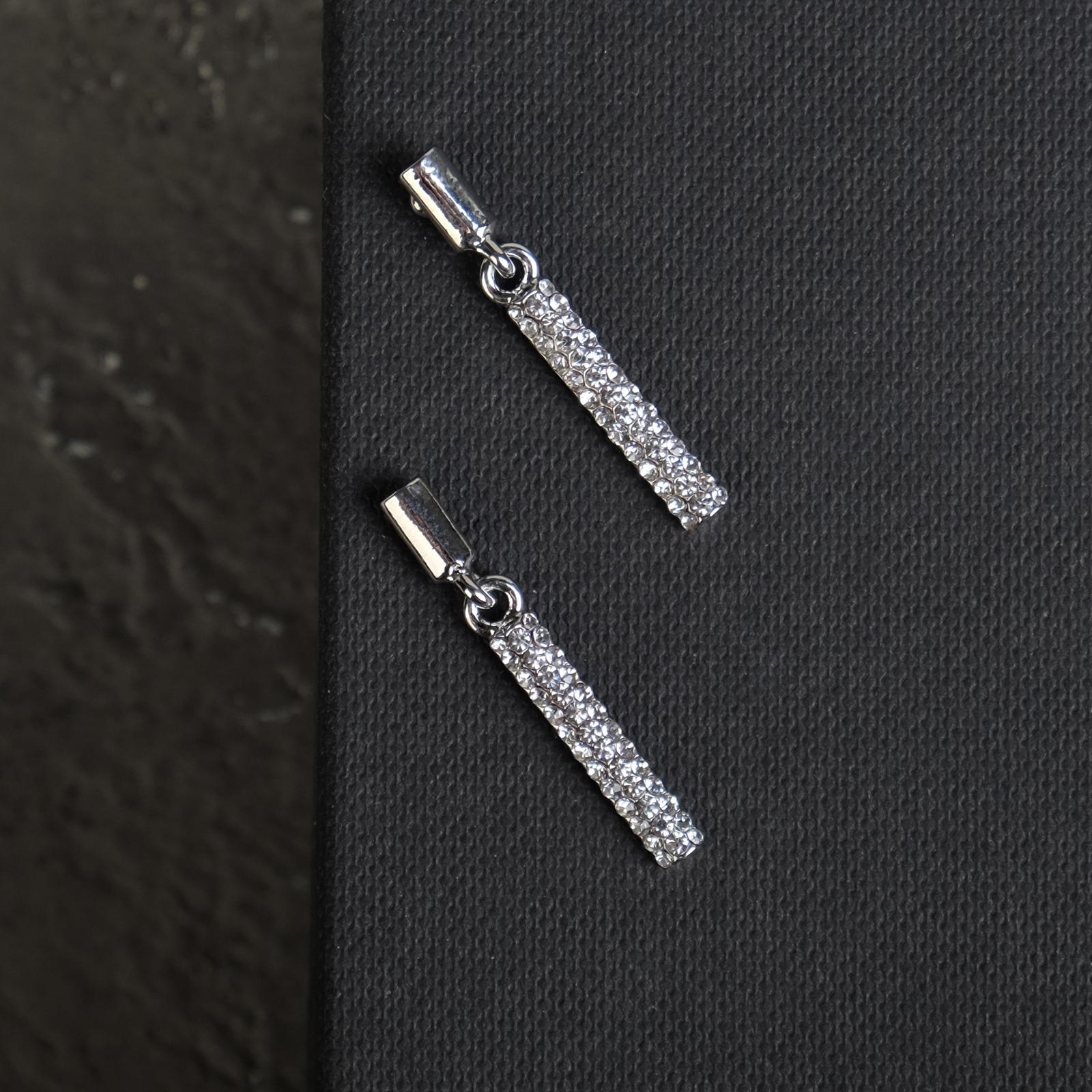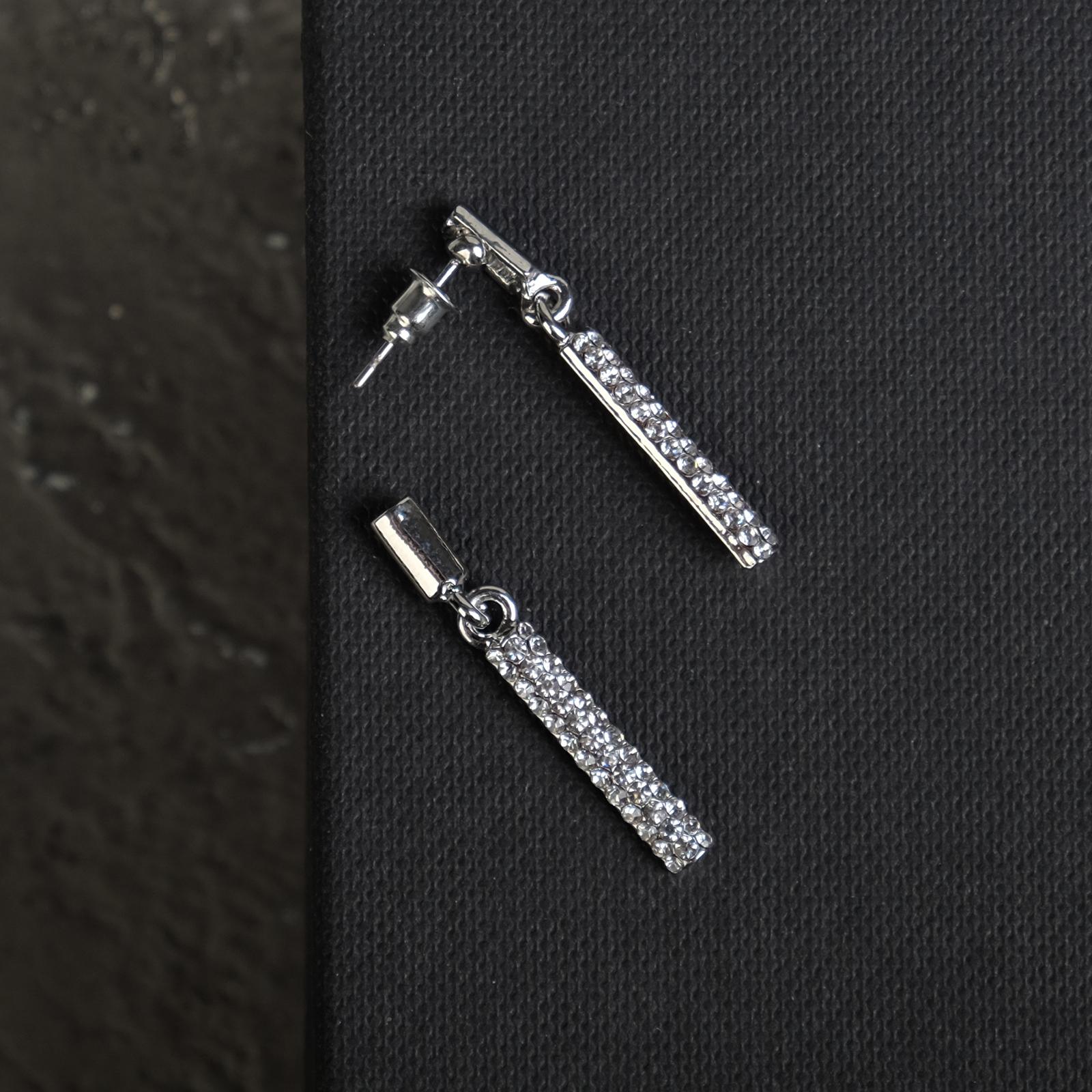 Серьги со стразами "Геометрия" тонкий цилиндр, цвет белый в серебре