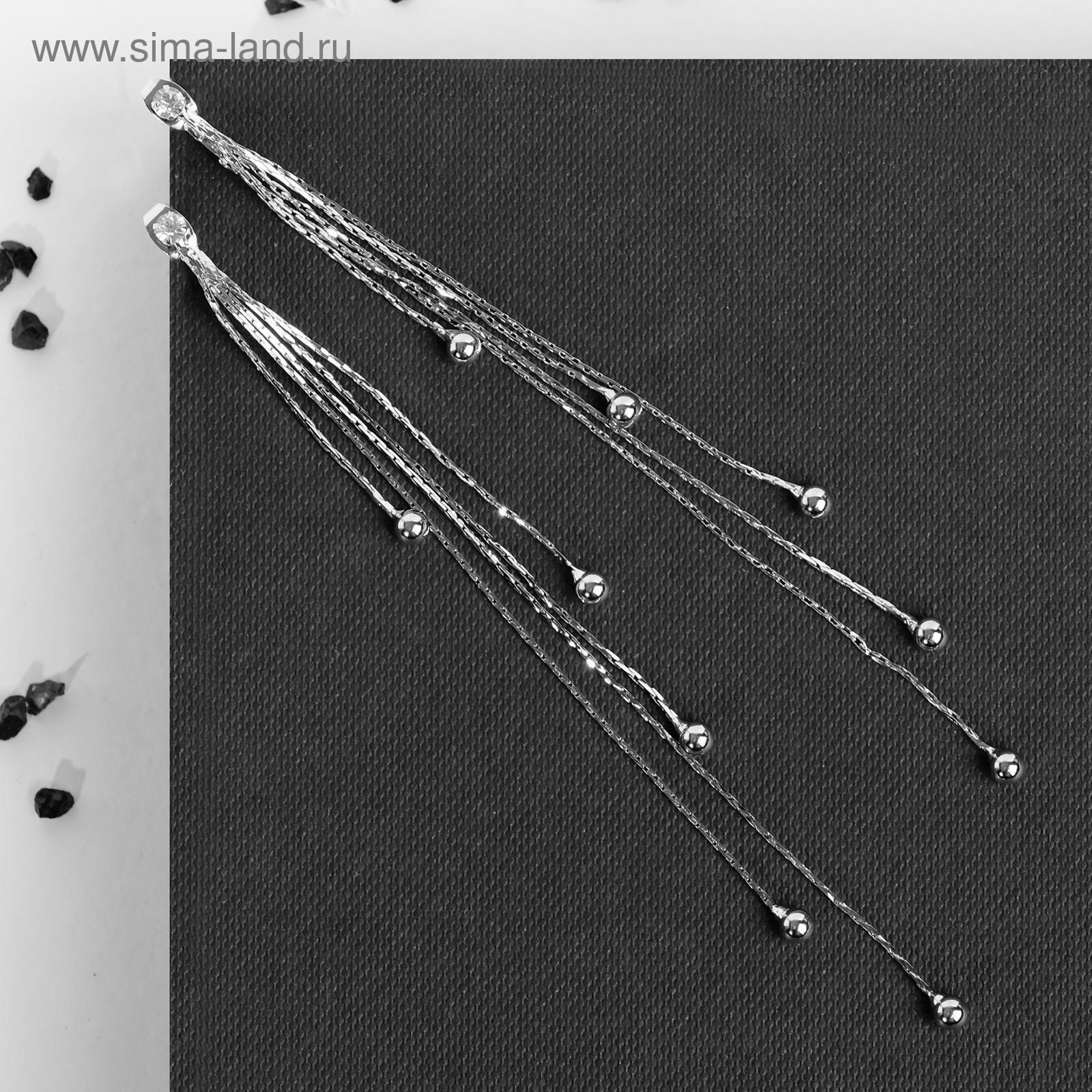 Серьги висячие со стразами "Селебрити" нити с бусинами, цвет белый в серебре