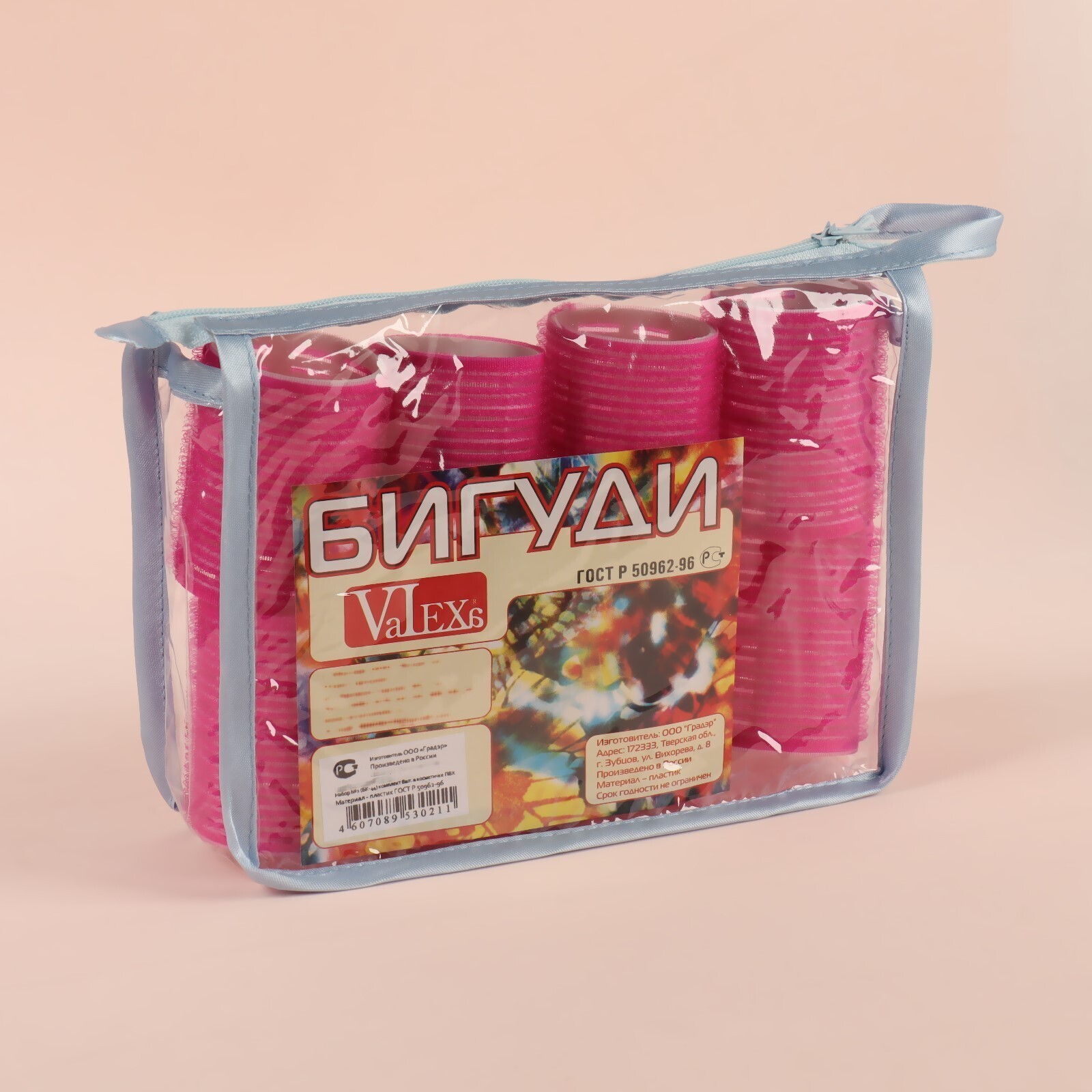 Бигуди «Липучка», d = 4,4 см, в косметичке, 8 шт, цвет МИКС