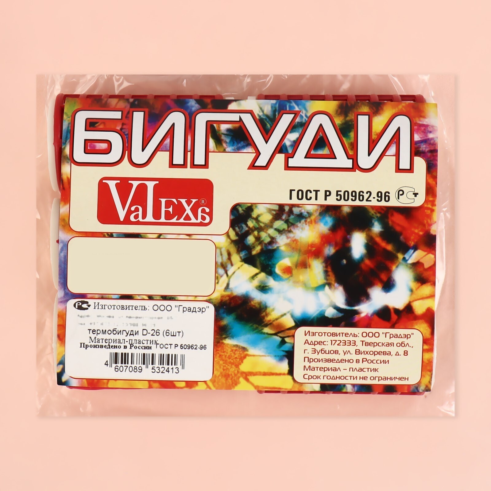 Термобигуди с фиксатором, d = 2,6 см, 6 шт, цвет белый/красный