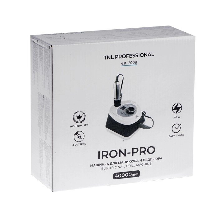 Аппарат для маникюра и педикюра TNL Iron-Pro IP-40, 40 000 об/мин, 40 Вт, розово-белый