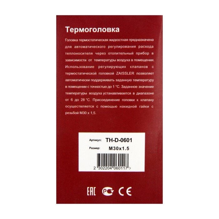 Термостатическая головка TIM TH-D-0601, жидкостная, М30х1.5 мм, PN 10, 6-28°С, хромированная