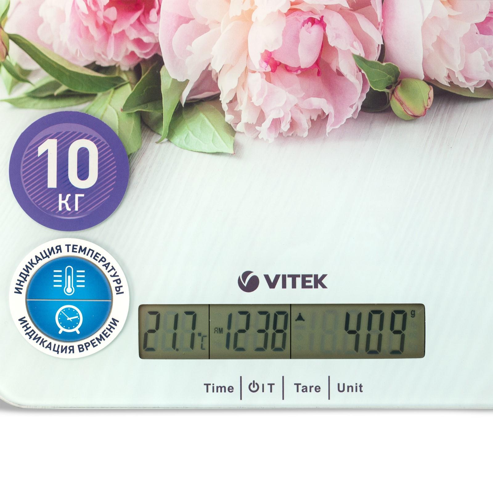 Весы кухонные Vitek VT-2414, электронные, до 10 кг, рисунок "Пионы"