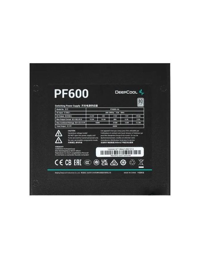 Описание товара Блок питания Deepcool PF600 600W (R-PF600D-HA0B-EU)