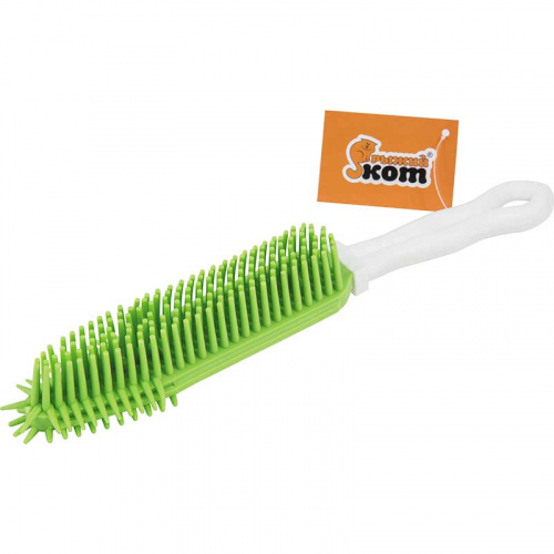 Щетка - евросметка с ручкой. Размер: 27х4см. Чистящая поверхность: 15х4см. Щетина: прорезиненная, h 3см. Цвет: ручка- белая, щетка-зеленая. Материал: пластик, резина. Упаковка: бирка (хэнгтаг). Щетка - евросметка идеально подходит для сухой уборки. Прорезиненная щетина прекрасно удаляет пыль и волосы с любых поверхностей. Отличительные особенности: многофункциональная и долговечная, удобный наклон ручки, легко поддерживать в чистом виде.