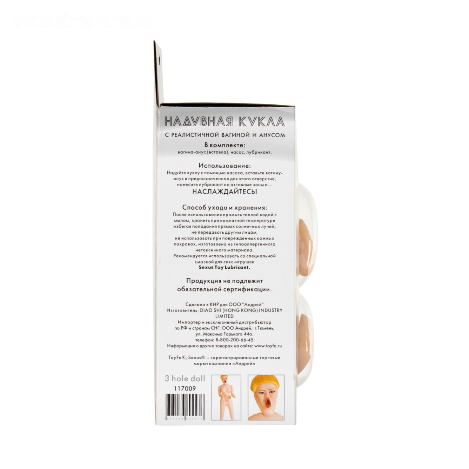 Кукла надувная Toyfa Dolls-X Passion Hannah, блондинка, с 3 отверстиями, 160 см