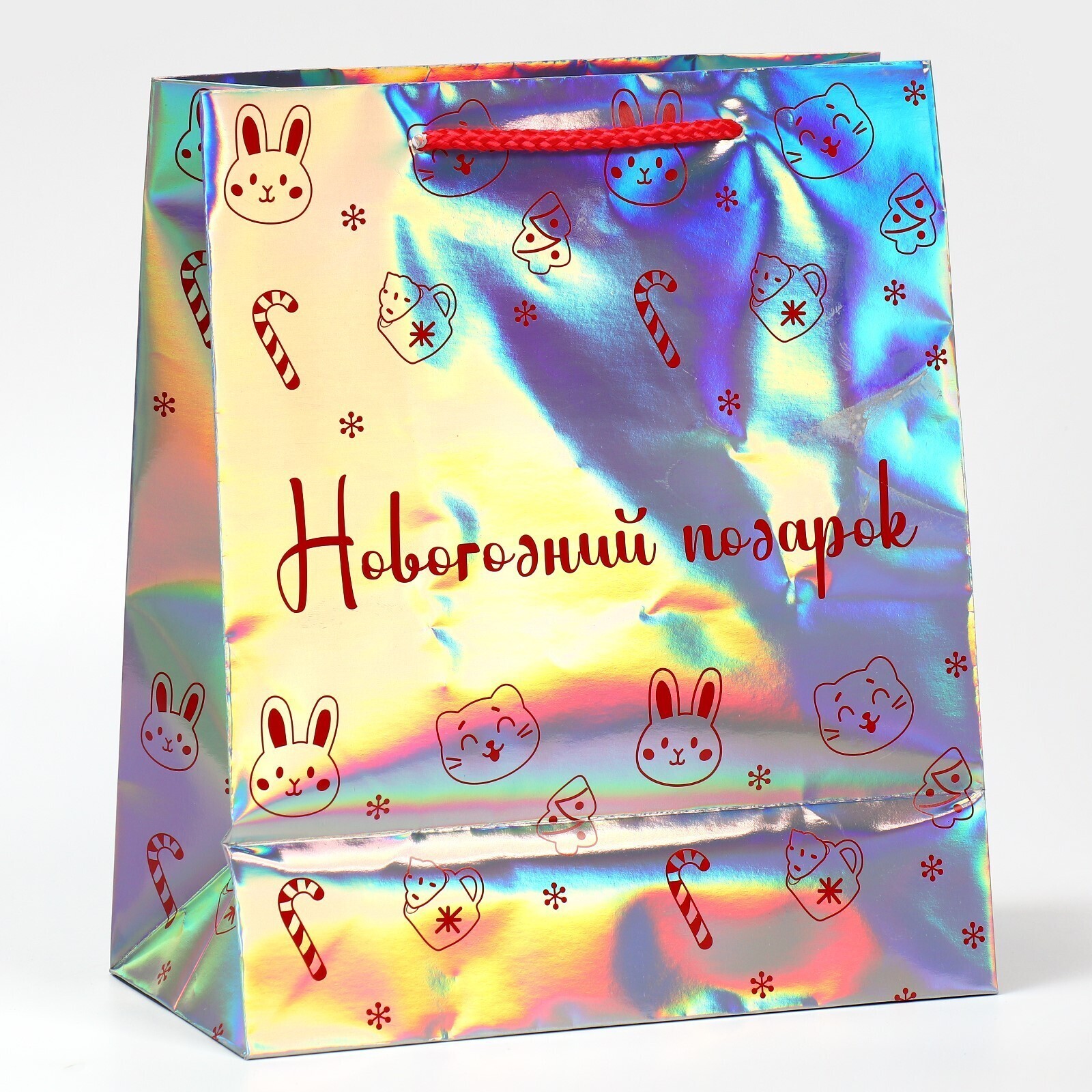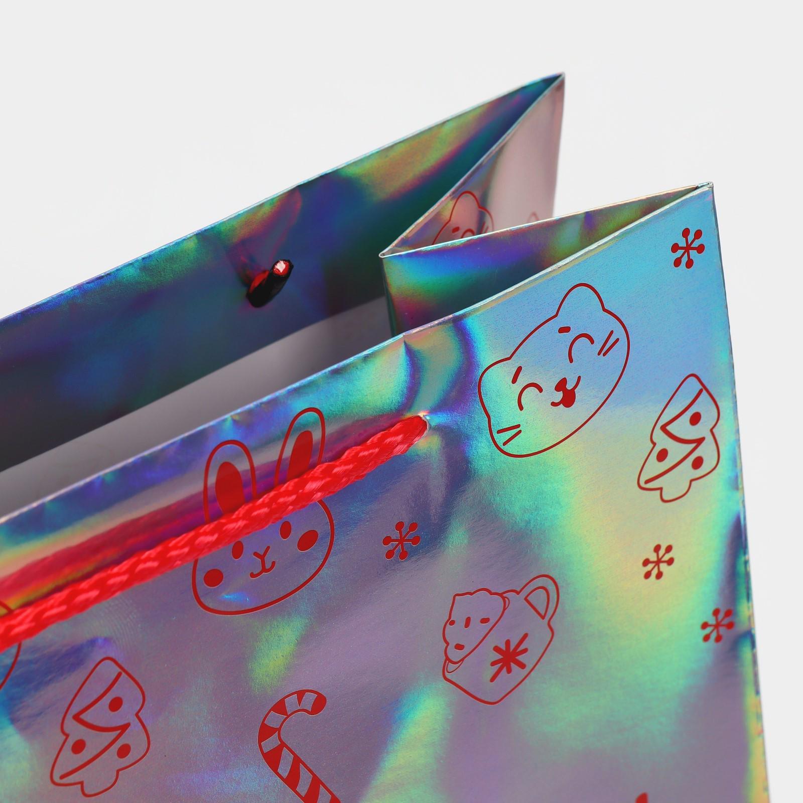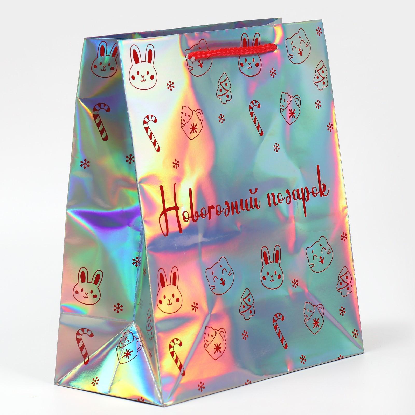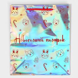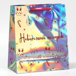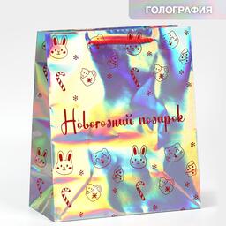 Пакет голографический горизонтальный «НГ подарок», ML 23 × 27 × 11.5 см