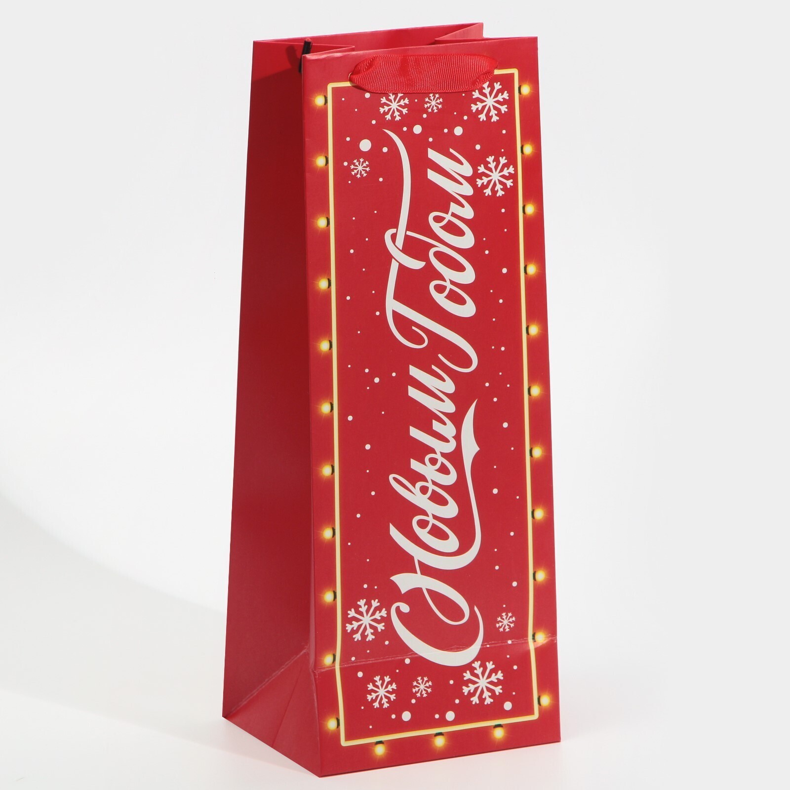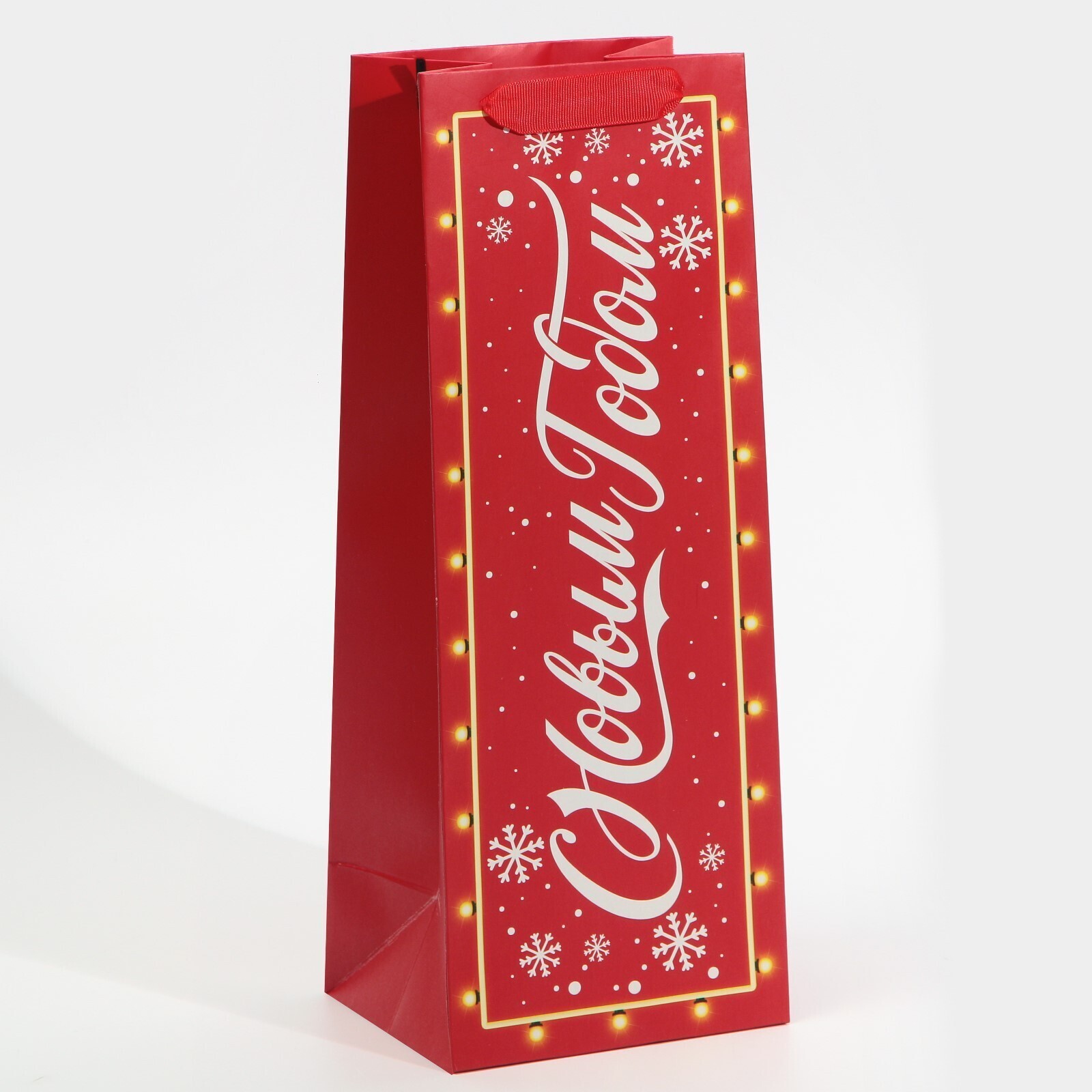 Пакет под бутылку «С Новым годом!», 13 х 36 х 10 см