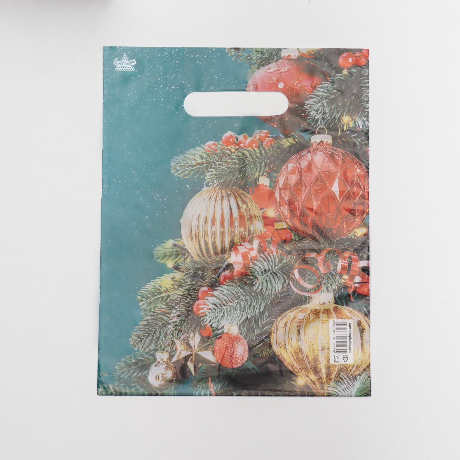 Пакет "Новогодний", полиэтиленовый с вырубной ручкой, 30х23 см, 30 мкм