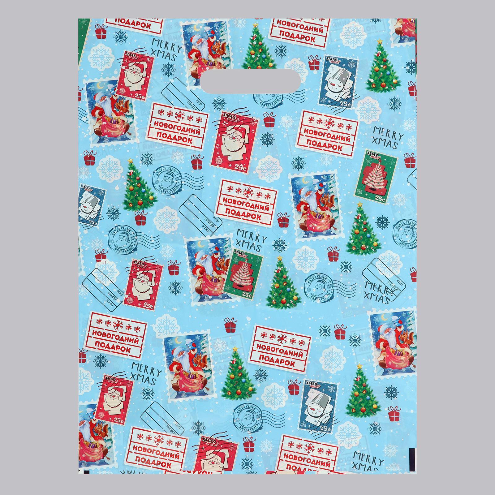 Пакет "Новогодняя почта", полиэтиленовый с вырубной ручкой, голубая, 30х40 см, 50 мкм