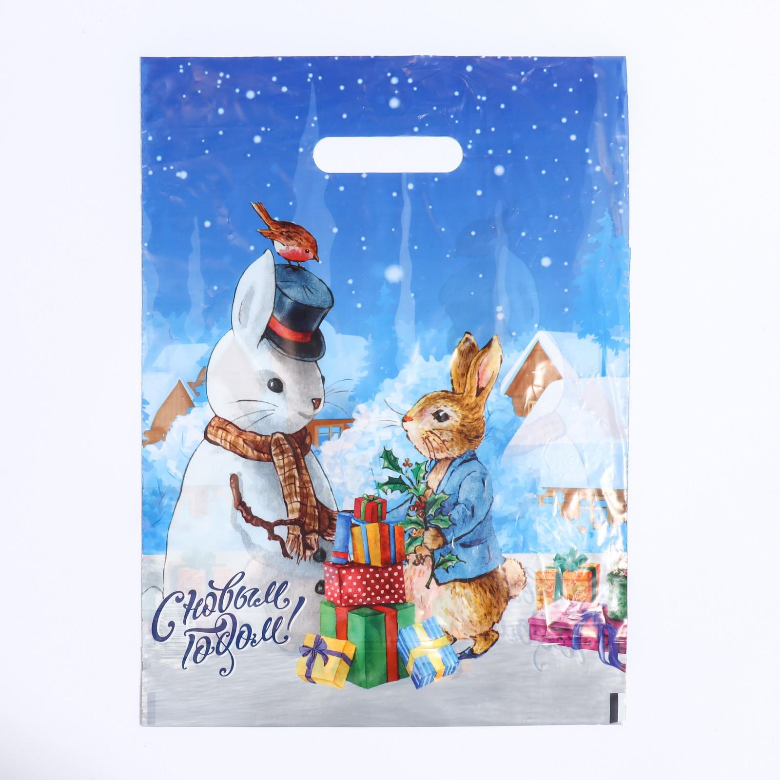 Пакет "Зайчик Снеговик", полиэтиленовый с вырубной ручкой, 30х40 см, 50 мкм