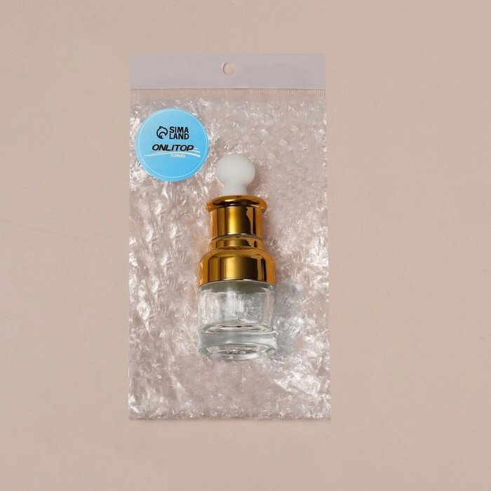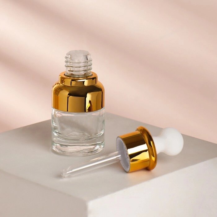 Бутылочка д/хранения с пипеткой Изящество 20мл d3,8*10,1см стекло золот/прозрач накл ОТ