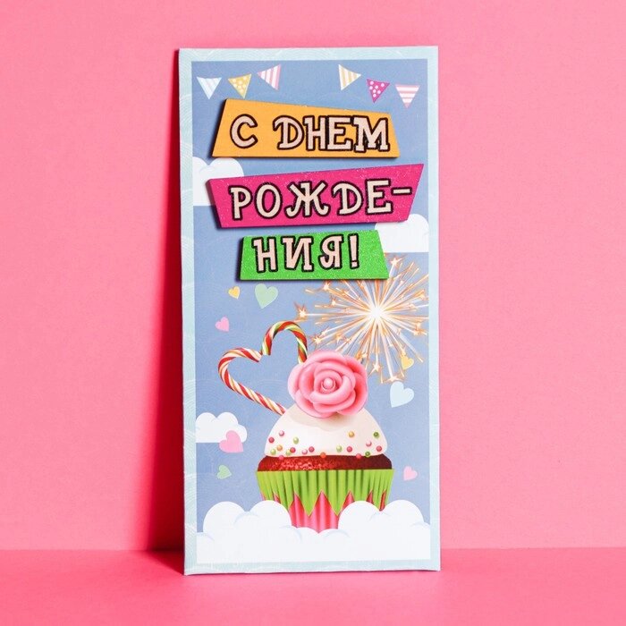 Конверт для денег с деревянным элементом "С Днем Рождения! кекс