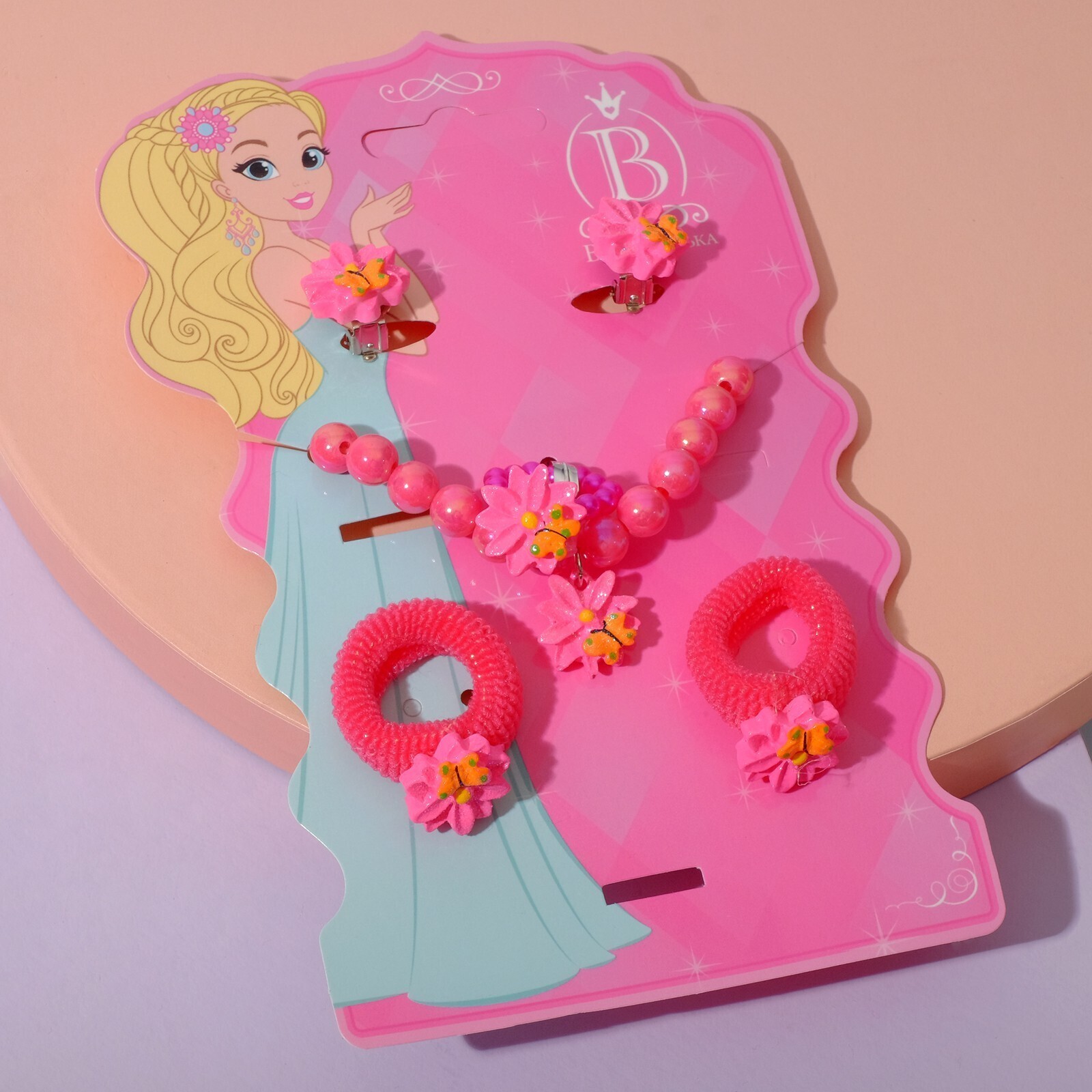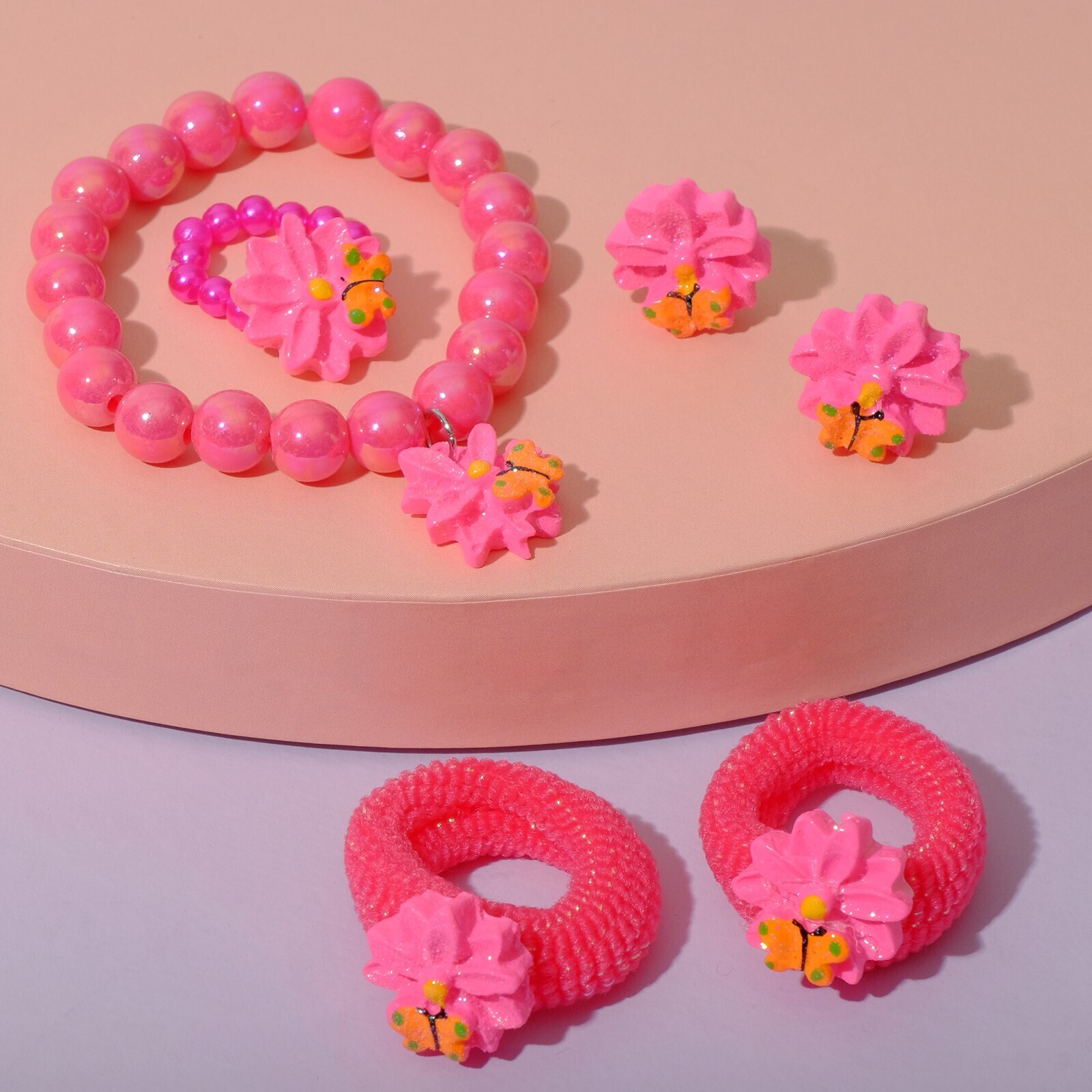 Комплект детский "Выбражулька" 5 предметов: 2 резинки, клипсы, браслет, кольцо, астра, цвет МИКС