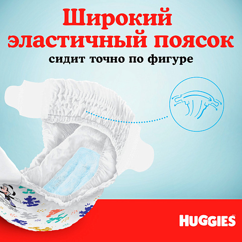 • Широкий эластичный поясок надежно фиксирует подгузник на ребенке, не топорщится на спинке, повторяя все изгибы тела, и не врезается в кожу