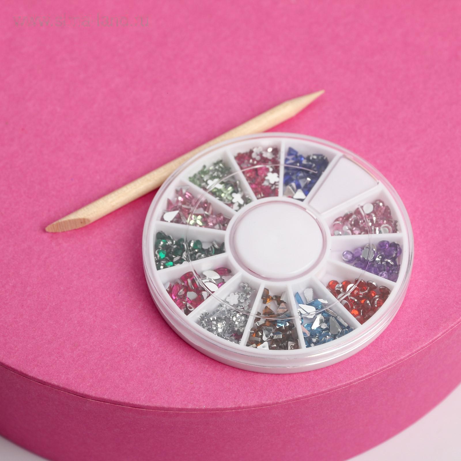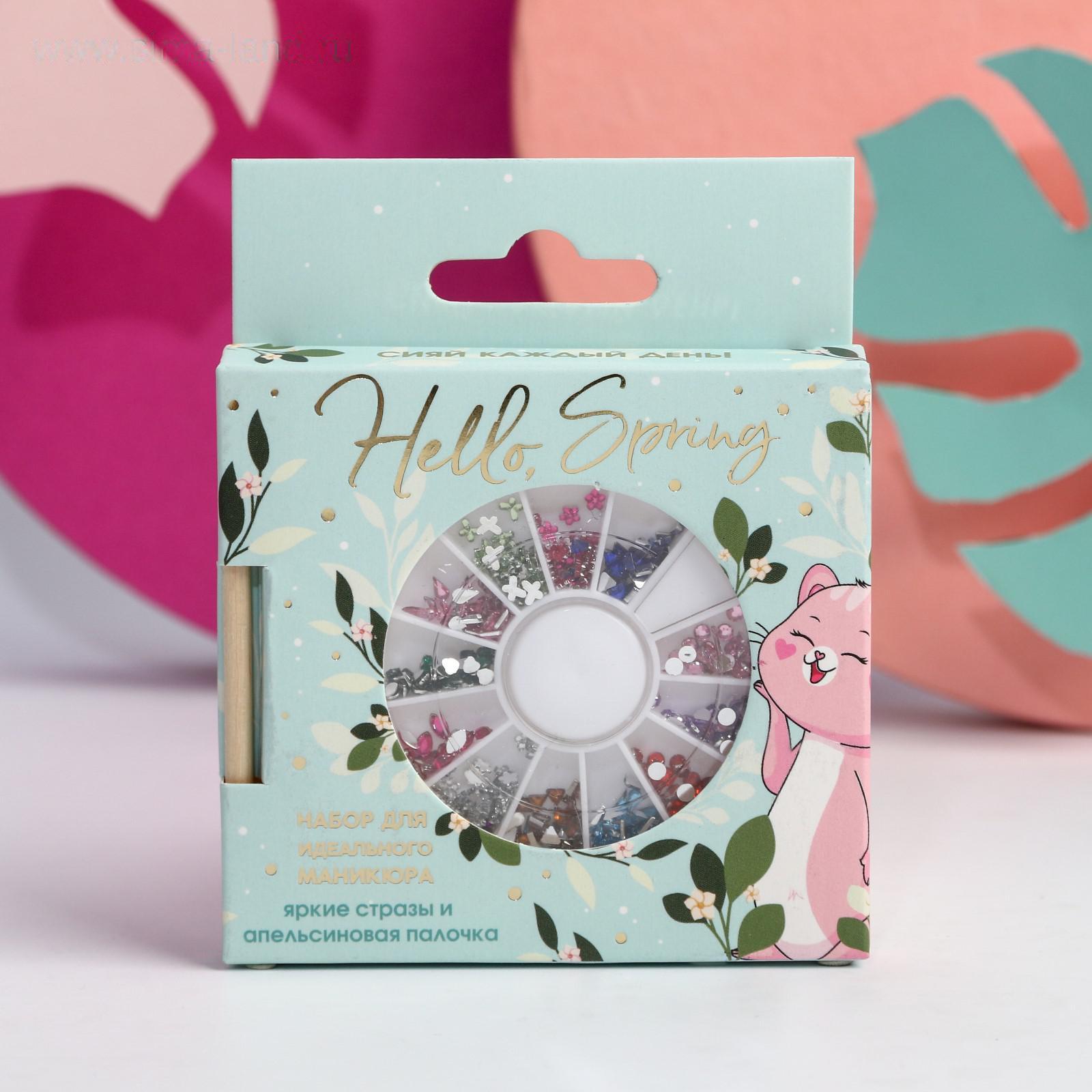 Набор фигурных страз для декора ногтей (12 цветов) и апельсиновая палочка Hello, spring!