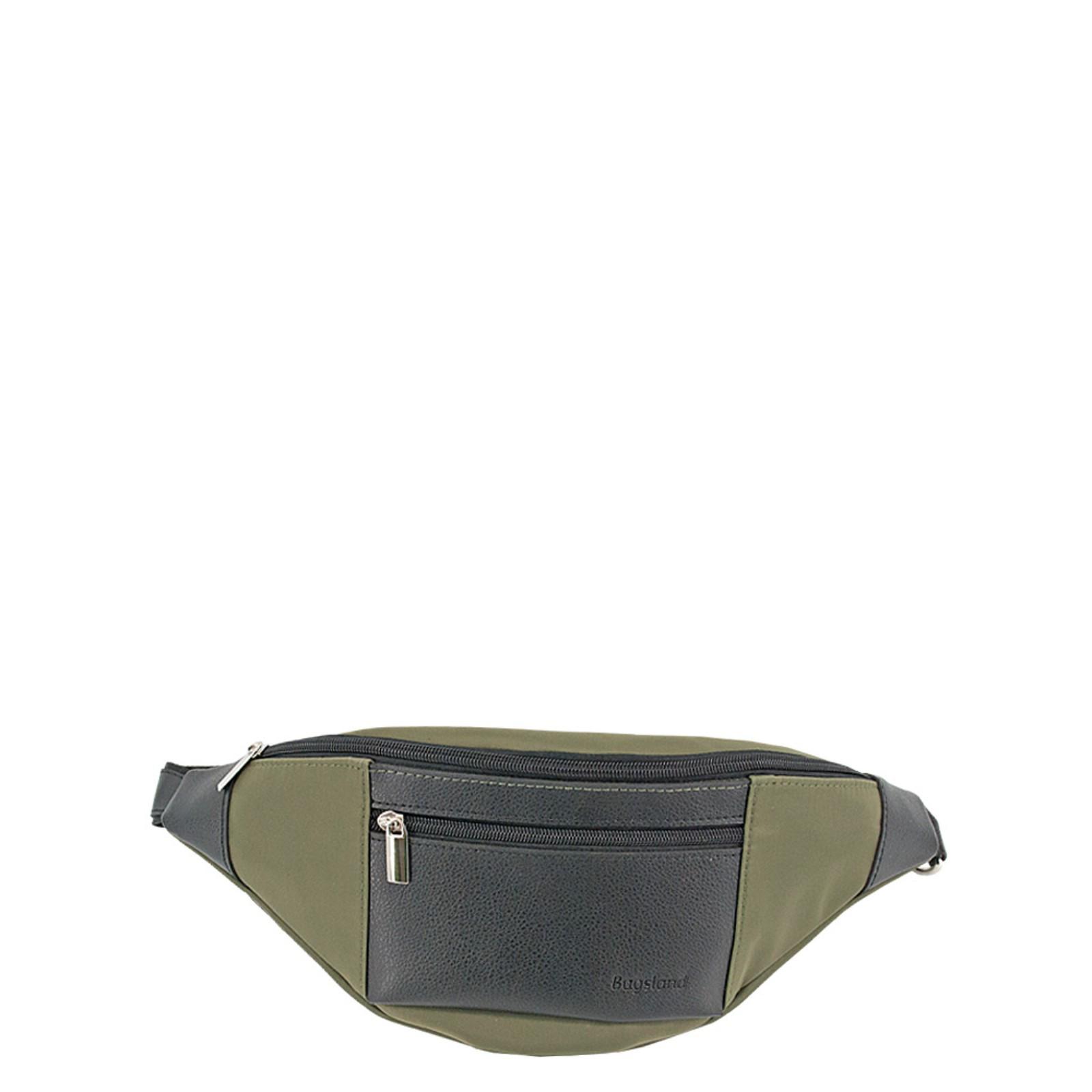В2735 Сумка поясная, отдел на молнии, цвет черный/зеленый 14х29х10см