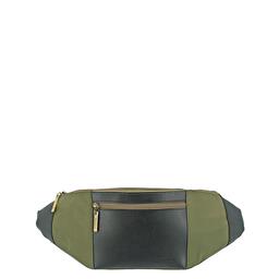 В2765 Сумка поясная, отдел на молнии, цвет черный/зеленый 43х11х15см