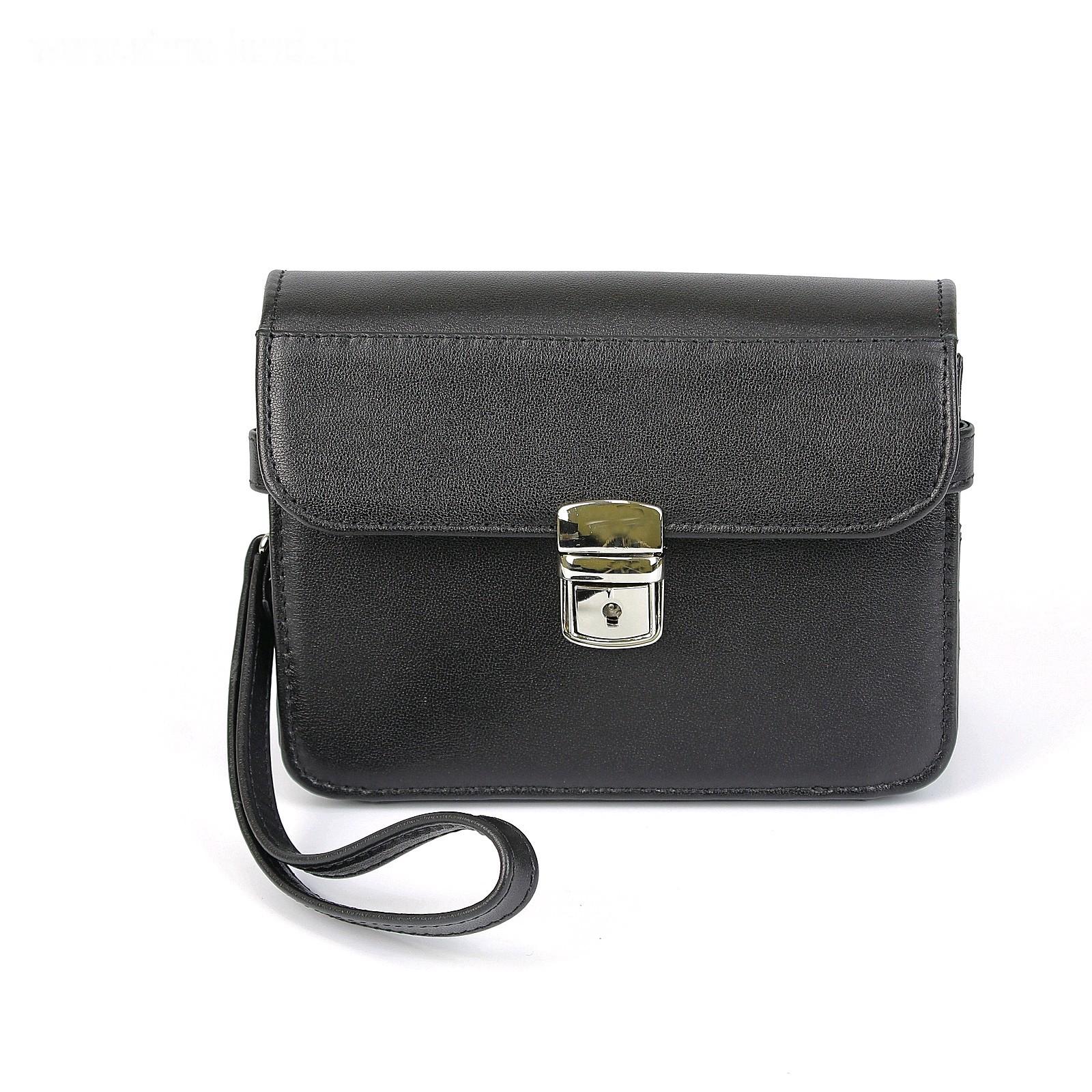 Барсетка, отдел на клапане, с ручкой, цвет чёрный