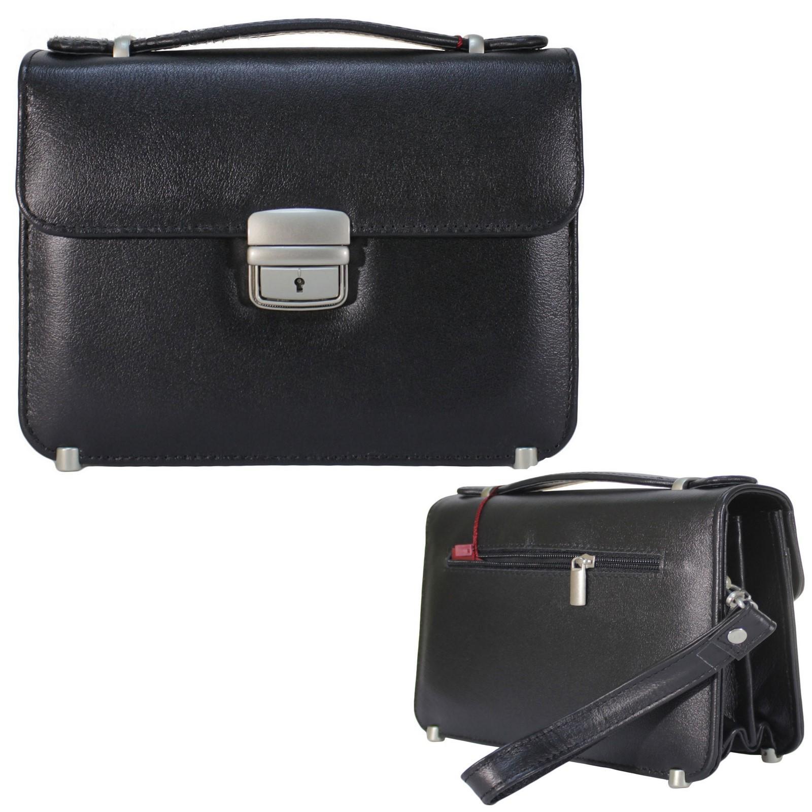 Барсетка на клапане, 3 отделения, натуральная кожа, цвет чёрный