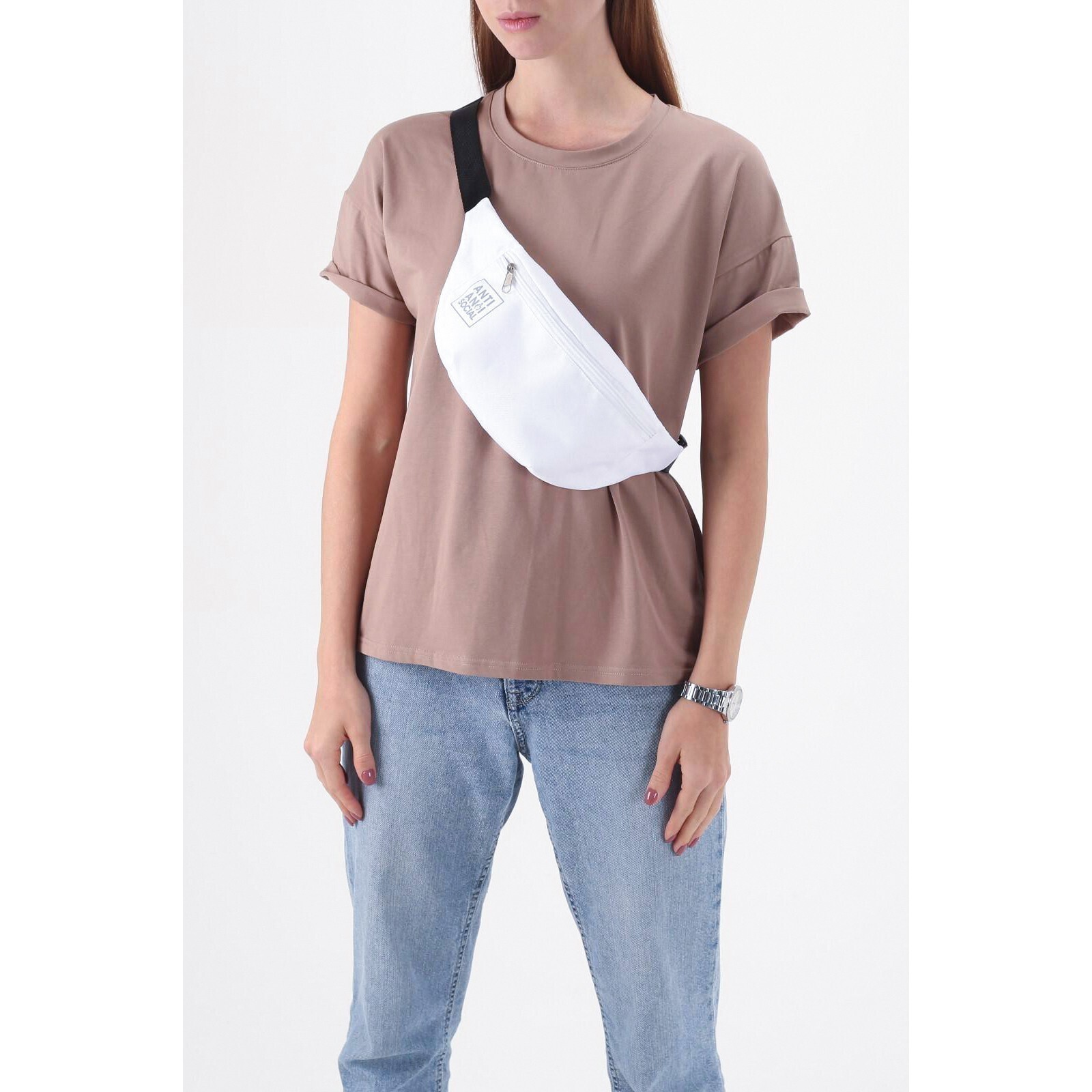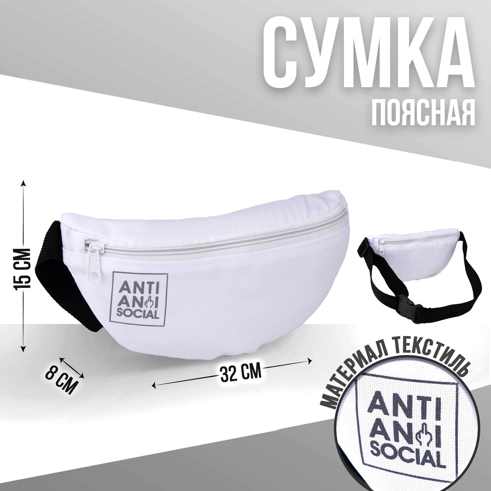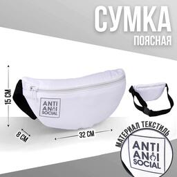 Сумка на пояс Anti anti social, 32х8х15 см, отд на молнии, цвет белый