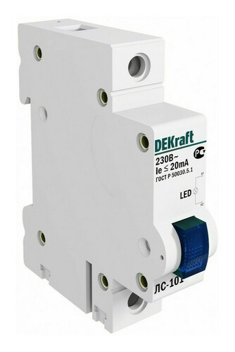 Лампа сигнальная на DIN-рейку 1P Цвет:СИНИЙ LED Л 18006DEK DEKraft ЛС-101