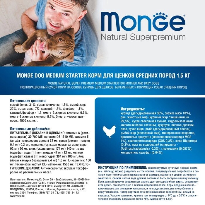 Сухой корм Monge Dog Medium Starter для щенков средних пород, 1.5 кг