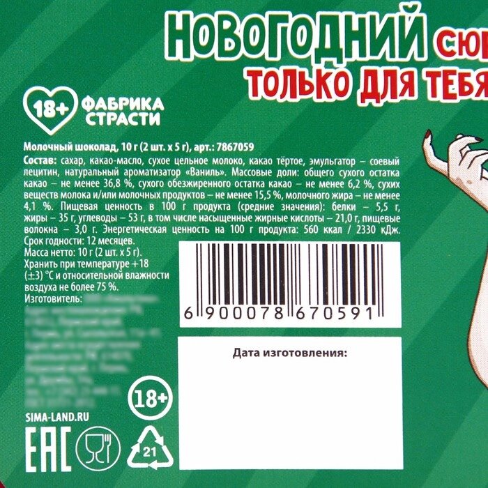 Шоколад "Новогодний сюрприз для тебя", 5 г. х 2 шт.