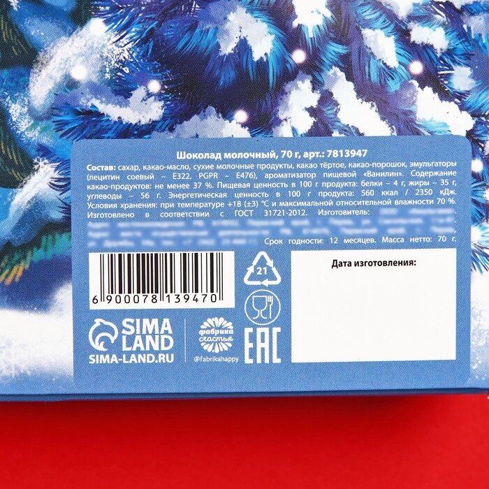 Подарочный молочный шоколад "С новым годом", 70 г.