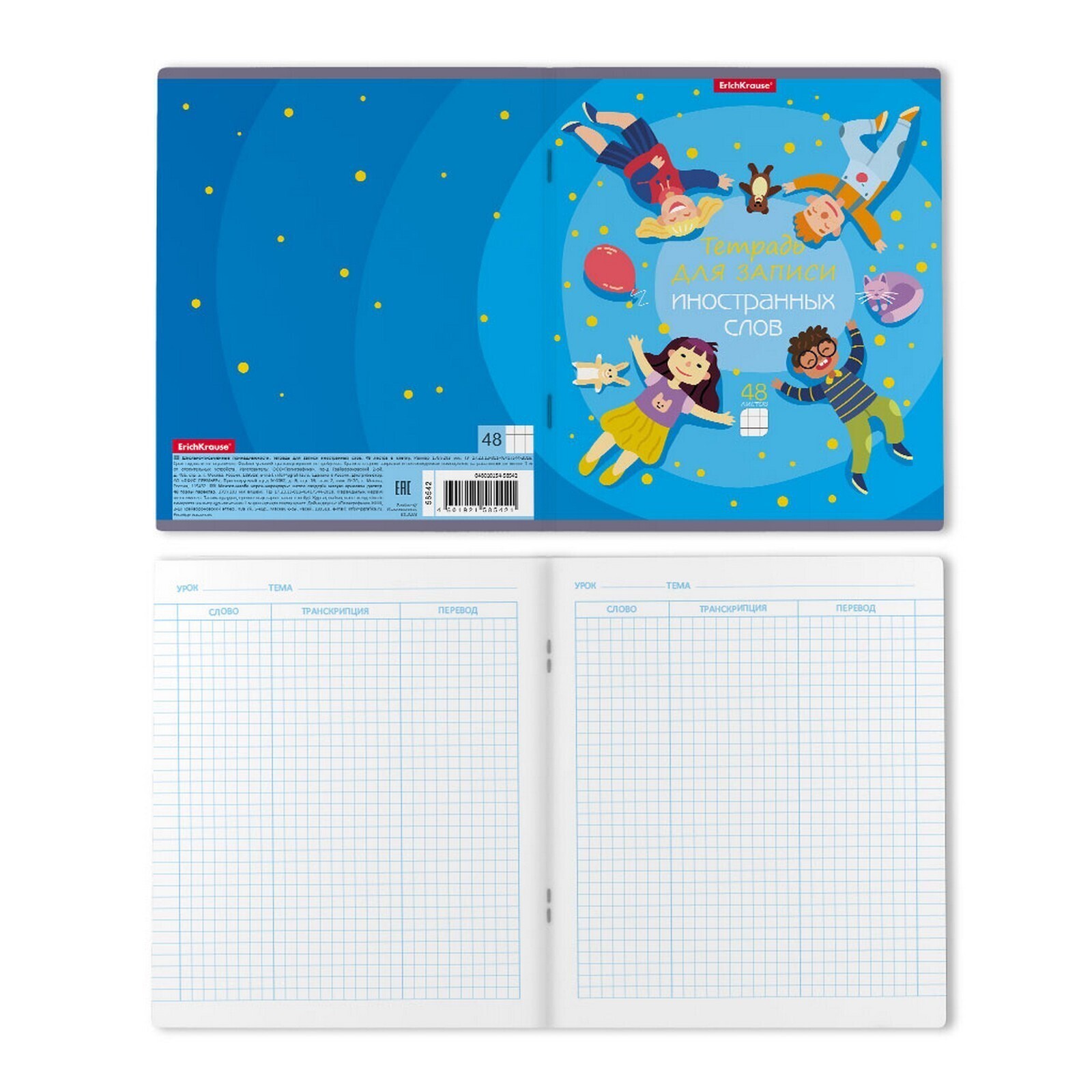 Тетрадь для записи иностранных слов, 48 листов в клетку ErichKrause Friendship, три столбца: слово, транскрипция, перевод, МИКС