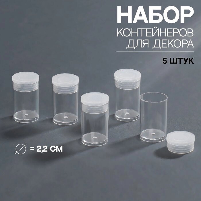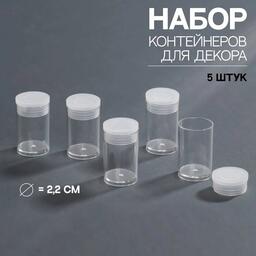 Набор контейнеров для декора, 5 шт, d = 2,2 см, цвет прозрачный