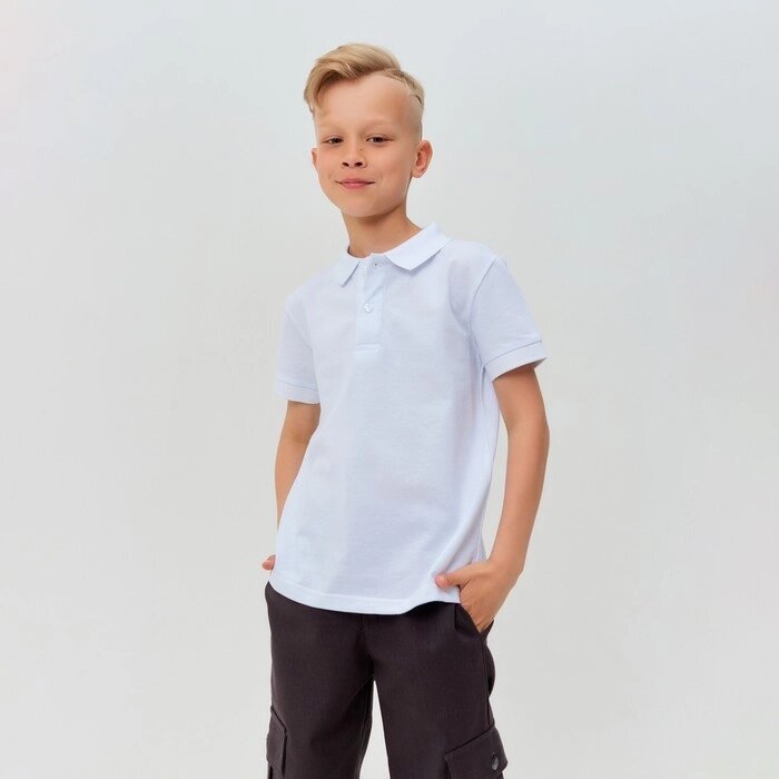 Футболка (поло) детская MINAKU: Basic line цвет белый, рост 110