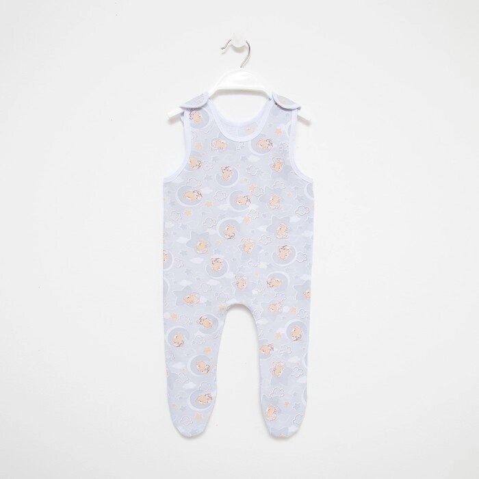 Ползунки длинные детские, цвет серый/мишки, рост 56 см