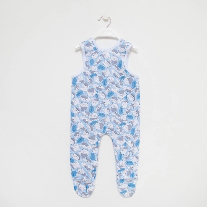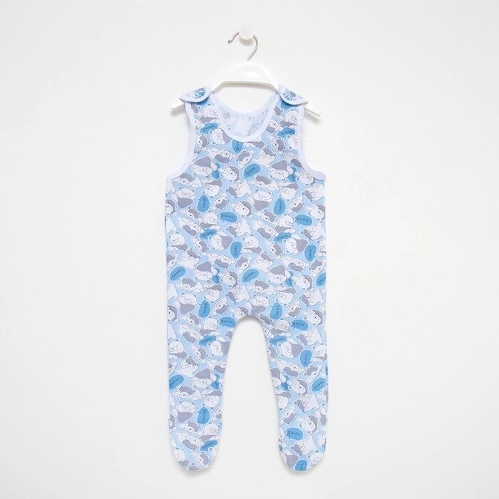 Ползунки длинные детские, цвет голубой/мишки, рост 62 см