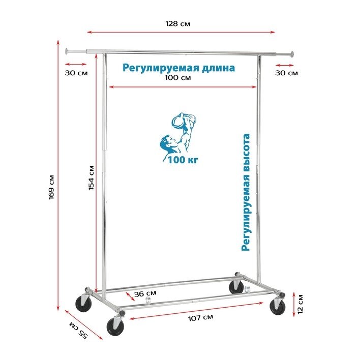 Стойка профессиональная для одежды MAXIMUS, 1440(1690) 450 1275(1870) мм, на колёсах